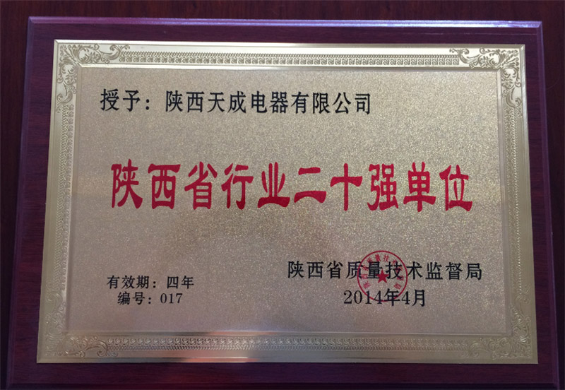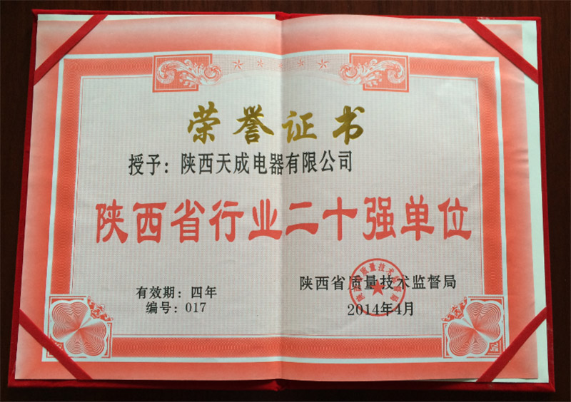 • 2014年行业20强证书